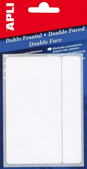 Etiquetas doble frontal en color blanco, cantos romos y tamaño 8,0 x 12,0 mm con adhesivo permanente.
